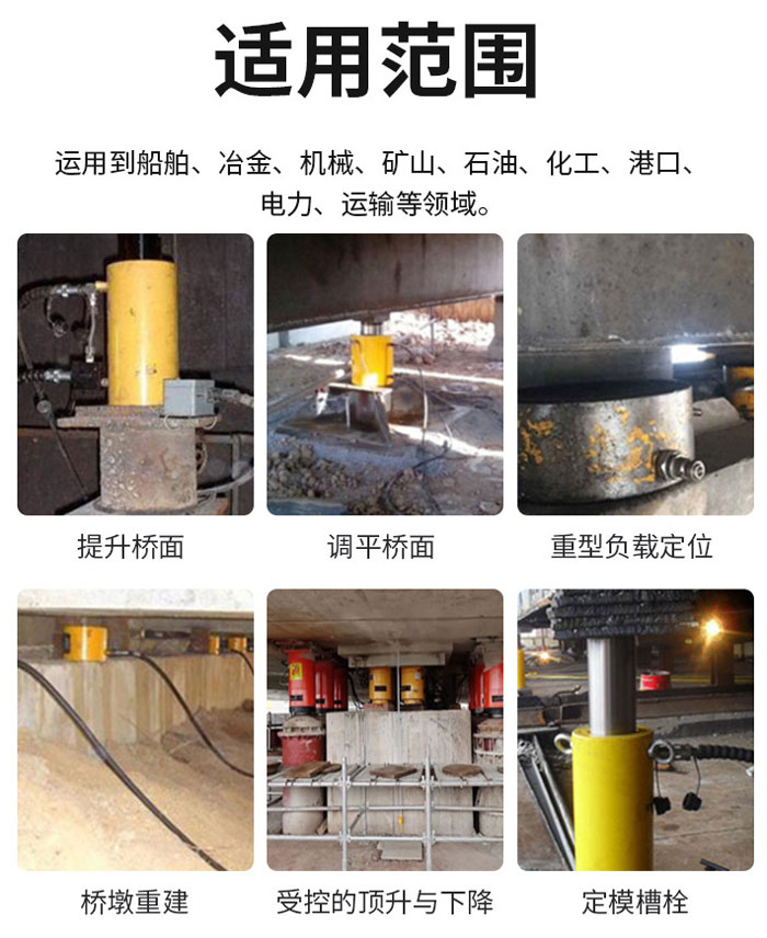 本公司生產(chǎn)的RC系列單動(dòng)式千斤頂(單作用千斤頂),設計有安全保壓裝置,內置卸壓閥防止過(guò)載,以保護千斤頂以利于安全操作。該裝置的連接采用的是高壓膠管和螺紋接頭連接,具有使用快捷,并克服快速傳統接頭漏油缺點(diǎn)主要用于電力、建筑、機械制造、礦山、鐵路橋梁、造船等多種行業(yè)的設備安裝起頂拆卸作業(yè)。